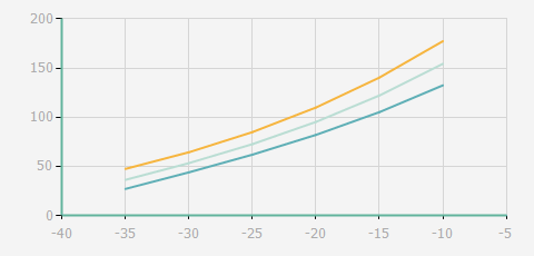 | 蒸發溫度 | 制冷量+/-5% | 能耗+/-5% | 現在能效+/-5% | 氣體流速+/-5% | 能效+/-7% | ||||